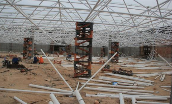 5)总体晋职法:此步履多使用在周边支护以及有多点支护的网架结构,可采取平板升降机、液压千斤顶等小型机具作业沈阳施工;